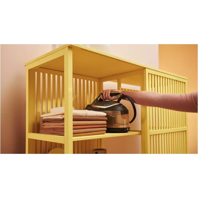 Wbudowany system usuwania kamienia Smart Calc Clean ułatwia konserwację żelazka z generatorem pary. W odpowiednim momencie przypomina on o konieczności odkamienienia. Co więcej, jest wyposażony w pojemnik, dzięki któremu usuwanie kamienia jest łatwe i bezpieczne. System służy do wielokrotnego użytku, co gwarantuje oszczędność — nie trzeba kupować dodatkowych wkładów.