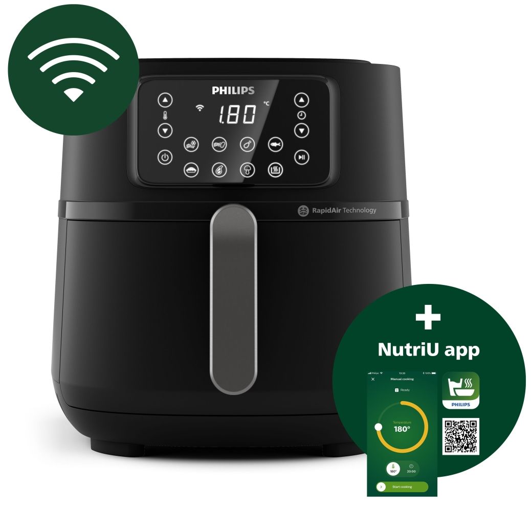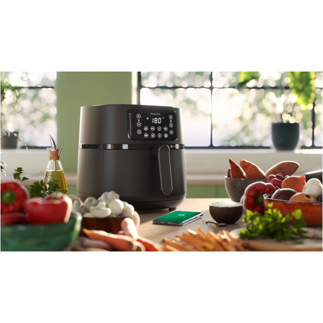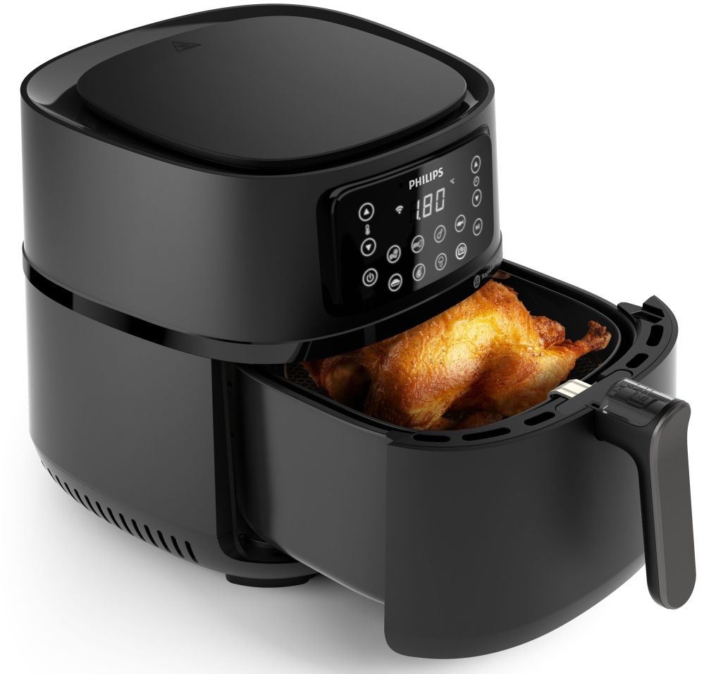 Urządzenie Philips Airfryer serii 5000 XXL Connected to Twój towarzysz w codziennym gotowaniu, umożliwiający przygotowywanie bezproblemowych, zbilansowanych pod względem odżywczym i wyśmienitych posiłków dla całej rodziny o każdym dniu tygodnia.