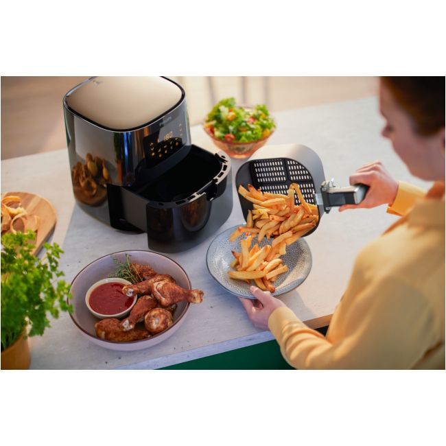 Ciesz się zdrowym jedzeniem, które jest chrupiące na zewnątrz i delikatne w środku, dzięki technologii Rapid Air. Pobierz aplikację HomeID, aby odkrywać setki smacznych przepisów każdego dnia.