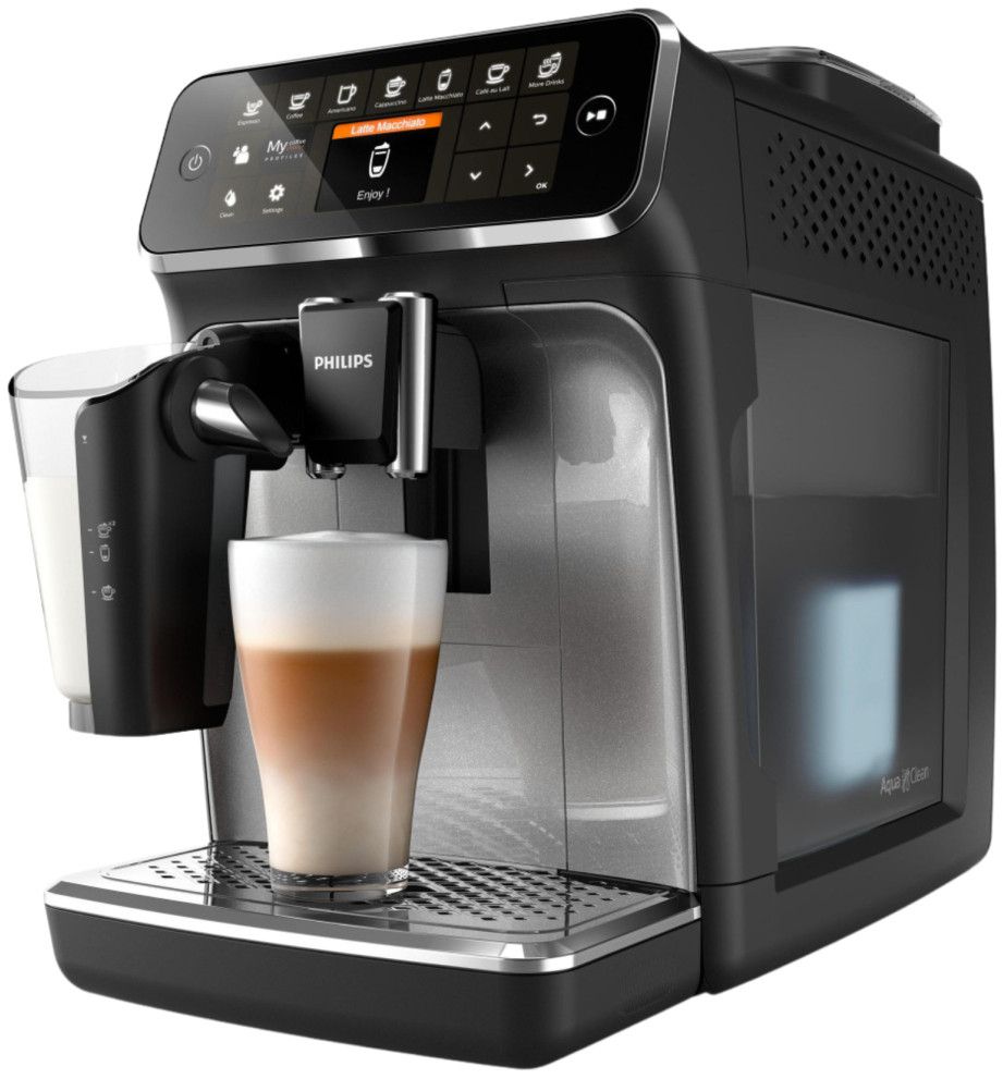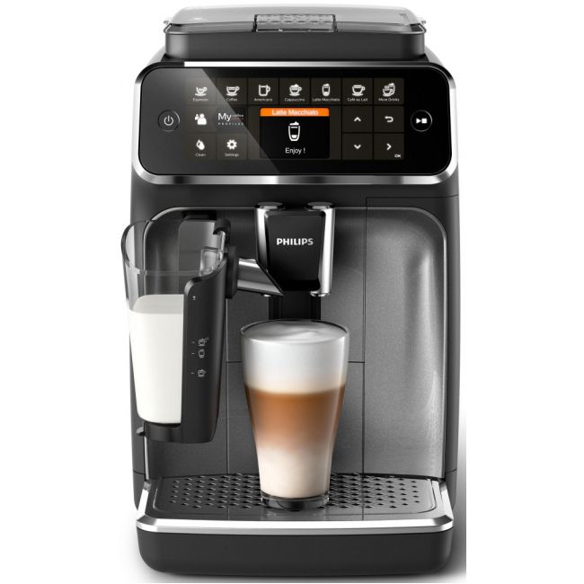 Wystarczy jeden przycisk, aby w łatwy sposób przygotować aromatyczną kawę — espresso, klasyczną czarną kawę, cappuccino czy latte macchiato. Prosty w użyciu system spieniania mleka LatteGo zwieńczy kawy mleczne aksamitną gładką pianką, a jego czyszczenie zajmie zaledwie 15 sekund.