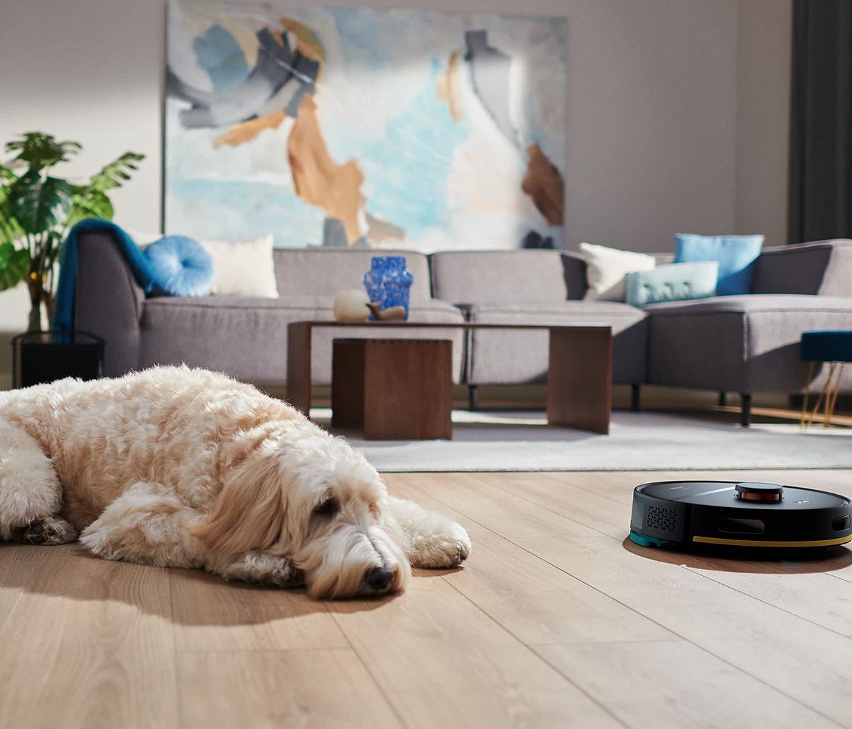 Robot odkurza i myje twarde podłogi za jednym razem, usuwając cienką warstwę kurzu, który gromadzi się na podłodze każdego dnia. Urządzenie usuwa więcej drobnego kurzu niż samo odkurzanie, dzięki czemu Twoje stopy pozostają czyste nawet wtedy, gdy chodzisz boso.