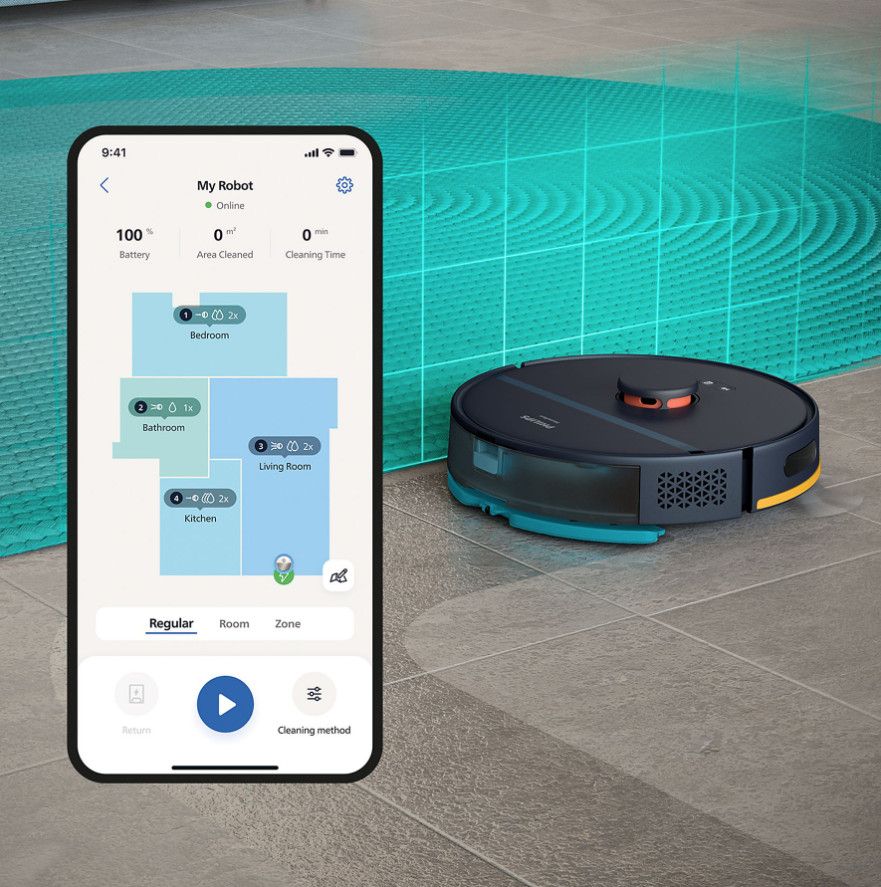 Zmień swój sposób sprzątania i przejdź na odkurzanie i mycie w jednym. Dzięki dużej mocy ssania robota możesz spodziewać się nieskazitelnych podłóg i dokładnego sprzątania, ze szczególnym uwzględnieniem dywanów, a wszystko z łatwością kontrolujesz za pomocą aplikacji Home Run.