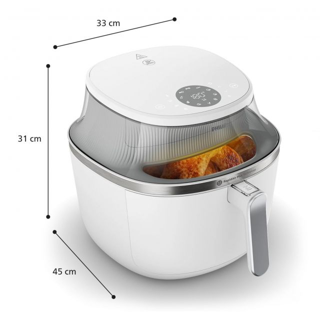 Opatentowana technologia RapidAir Plus z unikatową konstrukcją w kształcie gwiazdy pozwala na szybszą cyrkulację gorącego powietrza wokół i w środku żywności, zapewniając równomierne gotowanie wewnątrz i na zewnątrz, a tym samym smaczne domowe posiłki w czasie krótszym o 30%*