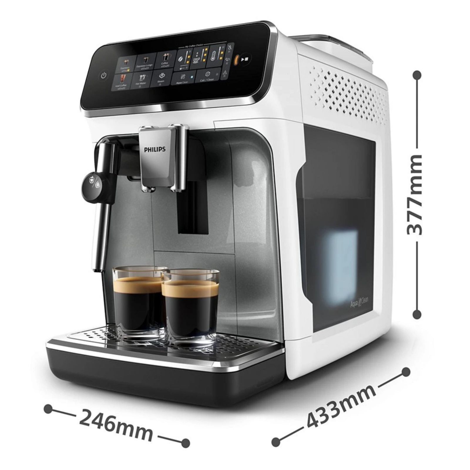 Ciesz się 5 rodzajami ciepłych i orzeźwiających napojów o idealnej piance, aromacie i temperaturze za naciśnięciem jednego przycisku. Dzięki klasycznemu spieniaczowi do mleka z łatwością przygotujesz gęstą piankę do cappuccino lub gorące mleko do gorącej czekolady.